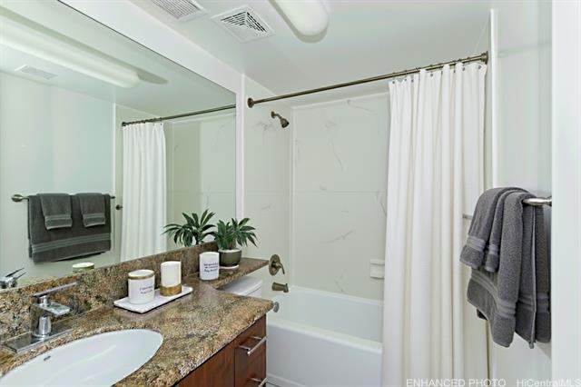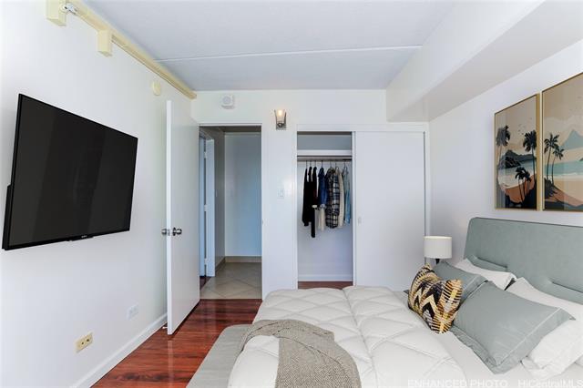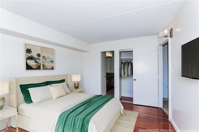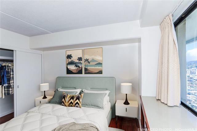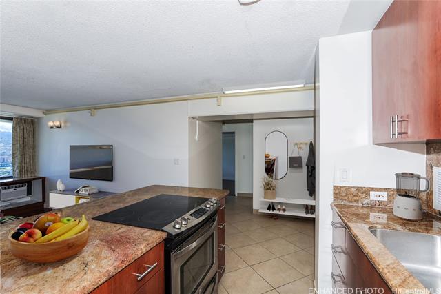 one level below penthouse - remodeled condo with stunning views of the koolau mountains. this beautiful newly remodeled 2-bedroom, 2-bath condo unit offers stunning views of the city and koolau mountains. the cozy open-concept kitchen features upgraded countertops, backsplash, and appliances, flowing seamlessly into the living area—perfect for entertaining. enjoy the convenience of in-unit washer and dryer, alarm/fire sprinkler system, and one covered/secure assigned parking stall. resort-style living awaits with 24-hour security and an array of amenities including a pool, sauna, guest parking, courtyard, basketball and tennis courts, bbq areas, putting greens, car wash station, and an on-site convenience store located lobby level. centrally located near downtown honolulu, uh manoa, ala moana center, waikiki, beaches, dining, shopping, and public transportation. urban living meets island comfort—don't miss this rare opportunity! sold as is, enhanced and virtually staged photos. -