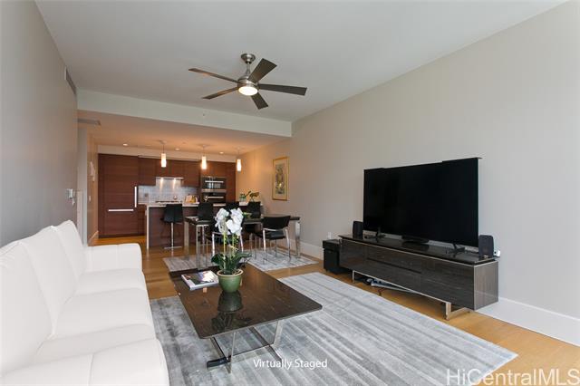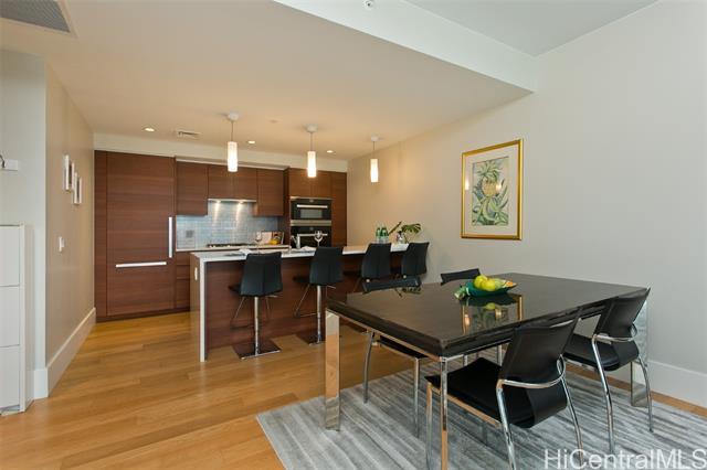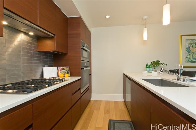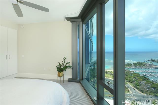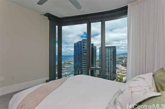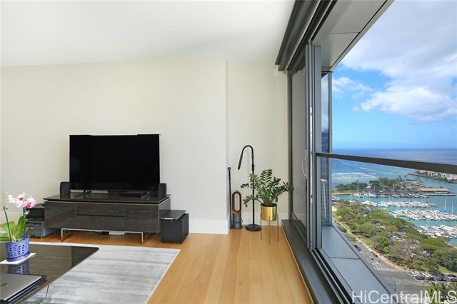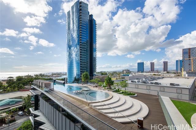 high-floor 1br unit at anaha, honolulu's premier luxury condo, with stunning views of kewalo basin and city skyline. features a modern kitchen with studio becker cabinets and miele appliances, plus an upgraded bath with deep soaking tub and toto neorest washlet. includes a storage locker and home warranty valid through 7/29/2028. located in ward village, across from whole foods and near ala moana beach and shopping center. residents enjoy world-class amenities: iconic cantilevered pool, ocean-view gym, sauna, theater, party room, library, golf simulator, bbq cabanas, tennis/pickleball/volleyball courts, dog park, playground, and 24/7 security with concierge. anaha is leed-certified with energy-saving features. ideal for locals and international buyers seeking luxury, convenience, and lifestyle in the heart of honolulu. -