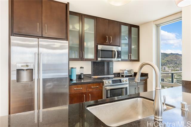 "this sophisticated three-bedroom, two-bath corner residence showcases floor-to-ceiling windows with motorized blinds, filling the home with natural light and framing stunning ocean views. the gourmet kitchen is appointed with granite countertops, bosch appliances, and a large island, while the adjoining lanai invites refreshing breezes that create effortless airflow throughout the space. the building offers an impressive collection of amenities, including a dramatic infinity pool, barbecue cabanas, a private theater, a beautifully designed club room with a full kitchen, a state-of-the-art fitness center with both weight and yoga studios, elegant guest suites, and convenient ev charging stations. located just a five-minute walk from ala moana shopping center, world-class restaurants, and even an urgent care clinic, this home places the best of honolulu at your doorstep. you may never need a car, yet the residence comes with one of the most desirable parking spaces in the building." -