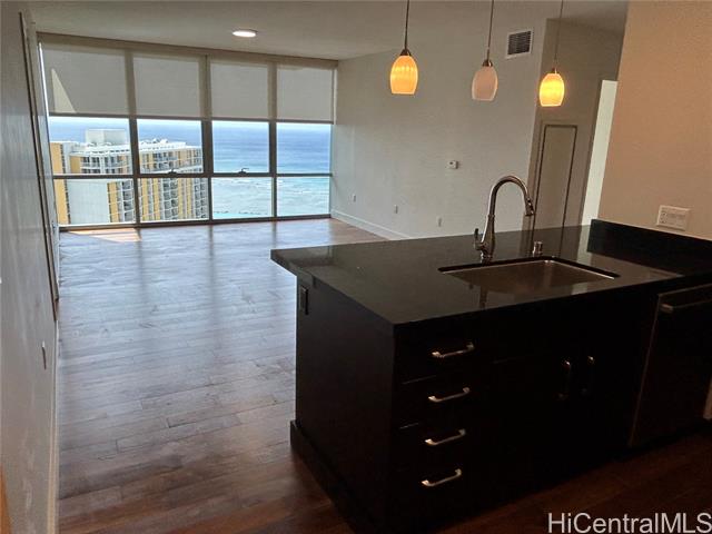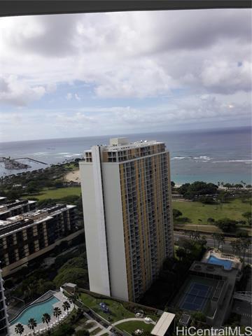"centrally located, secured, contemporary residence located near beaches, ala moana center, ward/kakaako business district. panoramic ocean & sunset views. elegant interior, gourmet kitchen, central ac. two full size covered parking in a secured garage with storage. superb amenities: includes: infinity pool, movie theater, fitness center, multiple bbq areas, elec car charging stations & more. 2 guest suite available for guest. re piping for this unit has been completed." -