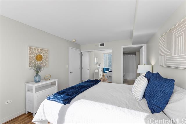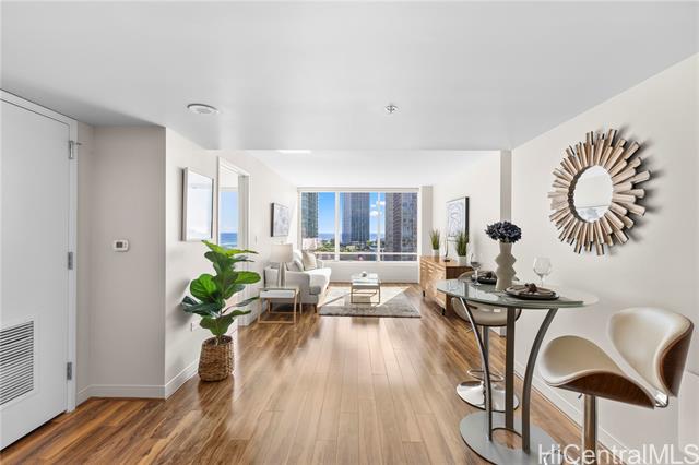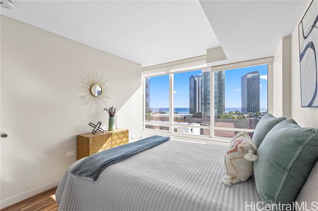 "an ocean view residence in pacifica honolulu, where luxury meets affordability in the vibrant, trendy neighborhood of kakaako. this desirable 2-bedroom, 2-bath + den floor plan of over 1,000 interior square feet provides flexibility with an additional lounge area or office. features granite countertops, hardwood cabinetry, luxury vinyl & ceramic tile flooring. motorized solar shades and central ac will keep you cool. residents enjoy a resort-style experience on the 5th-floor recreation deck, featuring a swimming pool, jacuzzi, bbq cabanas, fire pits, a party pavilion, a spacious fitness center, saunas, two theater rooms, and multiple seating areas. pet owners will love the private, secured dog park, while 24/7 security guards, cameras, and secured access to the building ensure peace of mind. ideally located, pacifica honolulu is minutes from ala moana shopping center, ala moana beach, ward village, blaisdell center, whole foods, waikiki, and an array of dining options, including chai's, doraku, and blue tree cafe on the first floor near guest parking." -