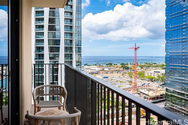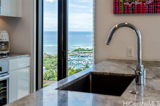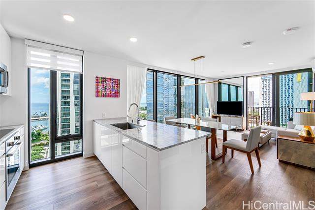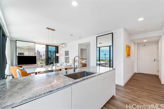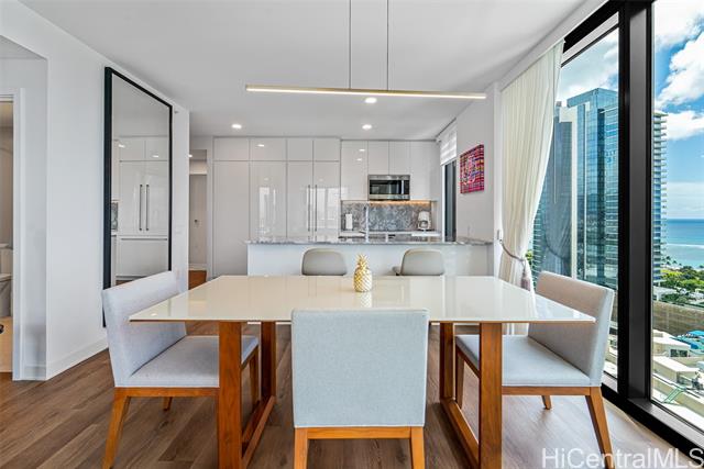 experience luxury living at a'ali'i, where ocean views greet you the moment you enter. the rectangular shape “01” stack offers the only corner 2-bedroom, 2-bath units with floor to ceiling windows, allowing you to enjoy stunning views from the living room, kitchen and bedrooms. this fully furnished turnkey home designed by rottet studio includes its own 37 sq ft storage room on the 22nd floor, an ev charger equipped parking with extra overhead storage, an upgraded toto washlet, two walk in customized closets, bosch appliances, and blackout shades in both bedrooms. a wide range of amenities including an outdoor sky deck, spacious gym, yoga room, bbq areas, large pool and jacuzzi, event rooms, are all extensions of your living space. a'ali'i represents luxurious, sustainable, and well-designed living in one of the most sought-after locations at ward village in honolulu. -