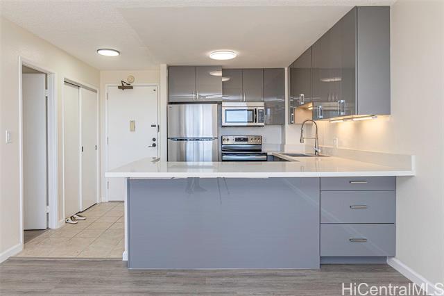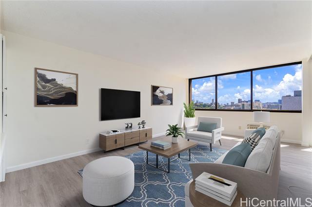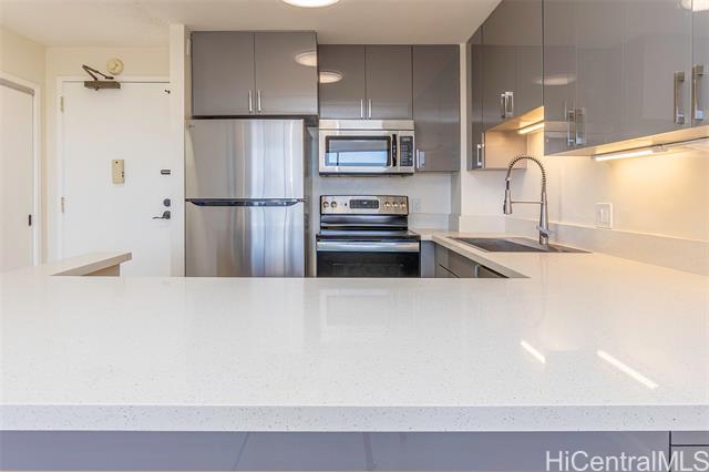 experience the best of downtown honolulu living at kukui plaza! this fully renovated 1-bedroom, 1-bathroom condo showcases beautiful mountain and city views and is just steps from restaurants, shopping, offices, bars, and the hawaii theatre. the home features a brand-new eat-in kitchen with quartz countertops and stainless steel appliances, new lvp flooring, fresh interior paint, and a stylishly remodeled bathroom with a tiled tub/shower and modern vanity. an assigned covered parking stall is also included. kukui plaza offers resort-style amenities including a tranquil private garden, walking paths, fish pond, pool, pergola for gatherings, pantry, and 24-hour security. don't miss this opportunity to own a piece of paradise in the heart of honolulu! -