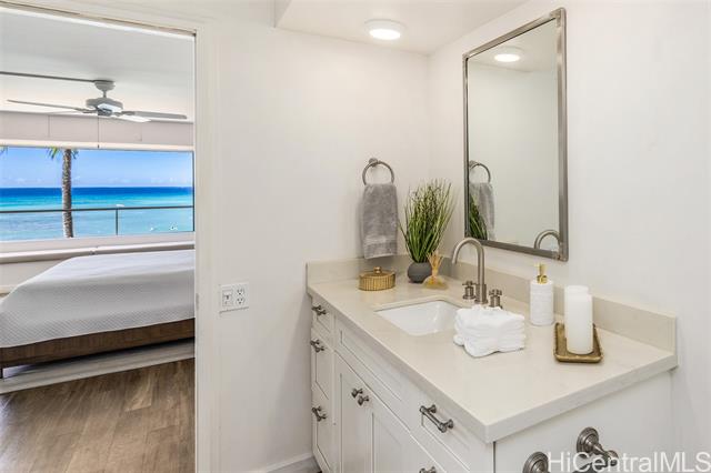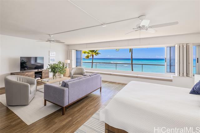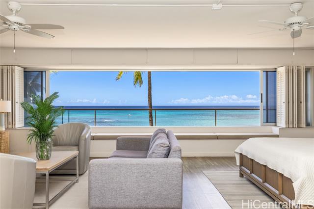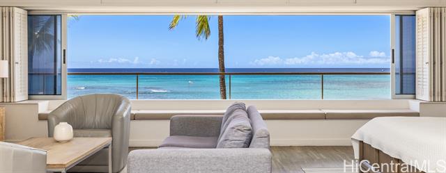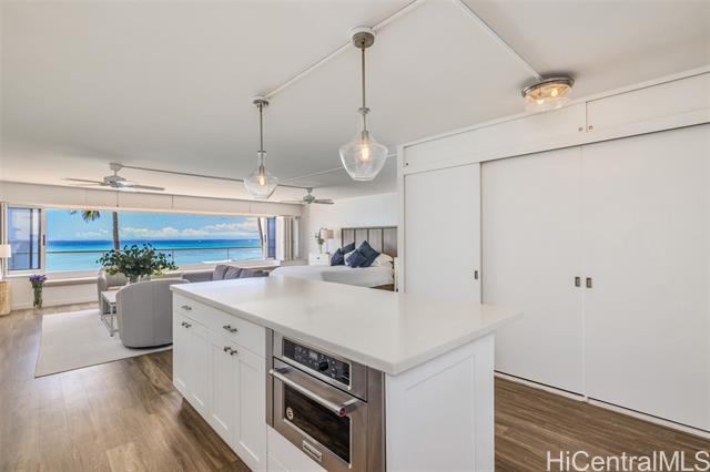 oceanfront living at the colony surf on oahu's gold coast! rarely available, desired low floor direct oceanfront 1 bedroom residence captures sweeping views of the turquoise pacific, golden sandy beaches, swaying palms, sailboat regattas, dazzling fireworks, & iconic waikiki. fully renovated unit includes high quality white cabinets, white quartzite countertops, stainless steel samsung appliances, chef's gas stove, built in microwave, wood style vinyl flooring, 2 ceiling fans, extra storage, and more! popcorn ceiling has been removed. the elegant colony surf offers a refined marble lobby, secure entry, & home to the world-class restaurant, michel's at colony surf. step directly onto one of the gold coast's premier sandy swimming & surfing beaches, with the prestigious outrigger canoe club & kaimana beach just steps away. across the street, enjoy the open expanse of kapiolani park, honolulu's 300-acre recreation haven with walking paths, tennis, pickleball, exercise areas, & picnic spots. stroll to diamond head, waikiki aquarium, honolulu zoo, & outdoor concerts at the waikiki shell. 1 assigned parking. maintenance fee covers electricity, cable, internet, gas, water, & sewer. -