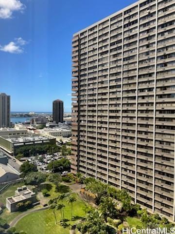 "beautifully remodeled in 2021 1 bedroom 1 bath condominium in kukui plaza diamond head tower with city, mountain and ocean views. features shaker style wood cabinets in kitchen and vanity, quartz counter tops, tiled shower walls. refinished ceilings and luxury vinyl flooring. air conditioner, appliances and microwave included. enjoy the pool, bbq areas or walk through the beautiful landscaped gardens. located at the top of downtown honolulu near shops and eateries. monthly public parking in the complex. photos were taken in 2022. unit sold in ""as is"" condition." -