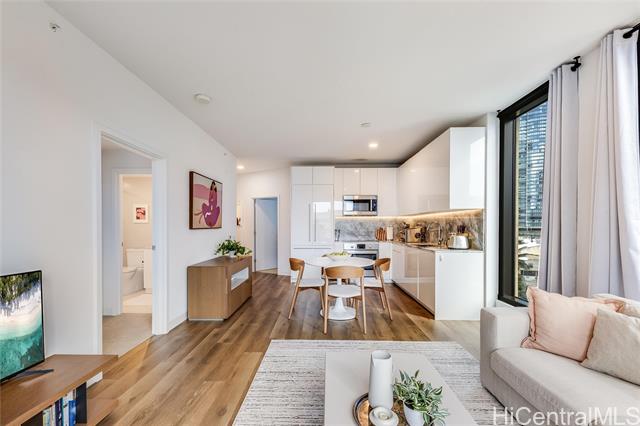 experience luxury living at 'a'ali'i in the heart of ward village in kaka'ako! this stunning front-corner 2-bedroom, 2-bath condo, designed by renowned solomon cordwell buenz and rottet studio, offers a modern, sophisticated lifestyle in one of honolulu's most coveted communities. fully furnished with sleek, space-saving design, this residence maximizes comfort and style. a rare find, this corner end unit is the most desirable 2-bedroom floorpan in the building, featuring in-unit washer/dryer, a walk-in closet in the primary suite, 1 parking stall with storage lockers above and an additional storage room in the building. floor-to-ceiling windows flood the space with natural light, while high-end finishes and premium appliances enhance the contemporary appeal. enjoy penthouse-level amenities on lanai 42, a full-floor oasis for relaxing and socializing, provide gorgeous 360° views of land and sea and a state-of-the-art fitness center and yoga studio. additional resort-style amenities include private lounges, pool, spa, playground, dog park and bbq cabanas. live steps from world-class dining, shopping, movies and the vibrant urban lifestyle of award-winning ward village. -