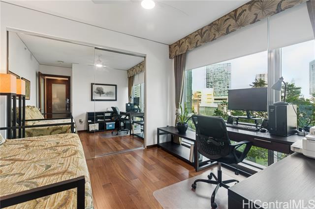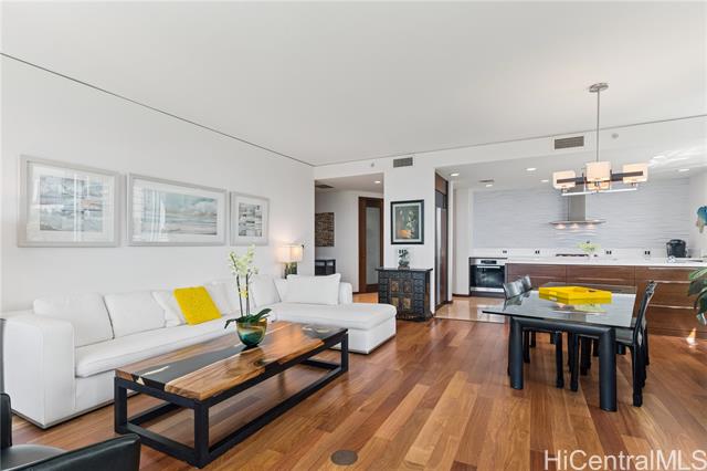 welcome to hokua , honolulu's crown jewel of luxury condominium living. since its debut in 2006, hokua has stood as a beacon of elegance, sophistication, and modern comfort in the heart of kaka‘ako. it offers the best of both worlds—resort-style amenities and the privacy of a single-family home—all within one of the most coveted addresses on the island. apt. 5g is a rare gem, having the interior totally gutted and upgraded, every detail has been meticulously curated to enhance comfort, functionality, and aesthetic appeal: hardwood floors and new custom doors throughout, modern kitchen, custom cabinetries and even a new central a/c system, offering 1,620 square feet of gracious living. from the moment you step into the entry foyer, you'll feel the ambiance of a private home. the layout is ideal for those seeking both openness and privacy: the two bedrooms are separated by a long hallway, ensuring quiet retreats for each occupant. the views from your living room are nothing short of breathtaking with the lush greenery of ala moana beach park and the ocean beyond. one of the unit's parking stalls has a dedicated ev charging station it will awe the most discerning buyers. -