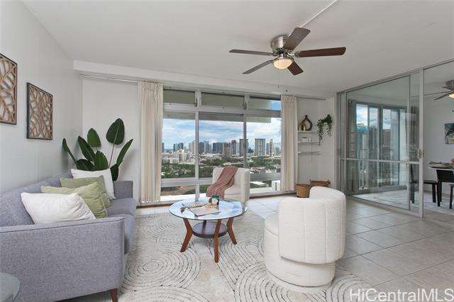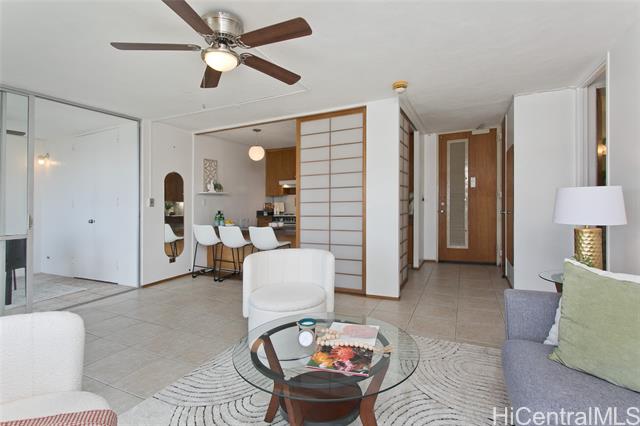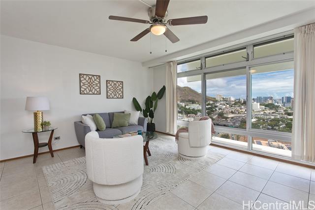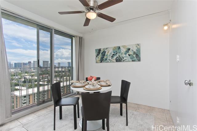 rare 2-bedroom, 1-bath corner unit in the heart of downtown honolulu! enjoy breathtaking views from punchbowl to kaka'ako, with diamond head and the ocean as your backdrop. the fully enclosed lanai expands your living area, perfect for work or relaxation. this residence includes one covered stall conveniently located nearby plus access to a serene japanese garden with koi pond and tea house. just minutes to the financial district, kaka'ako dining, shopping, and entertainment - this home offers the best of city living with a tranquil retreat. -