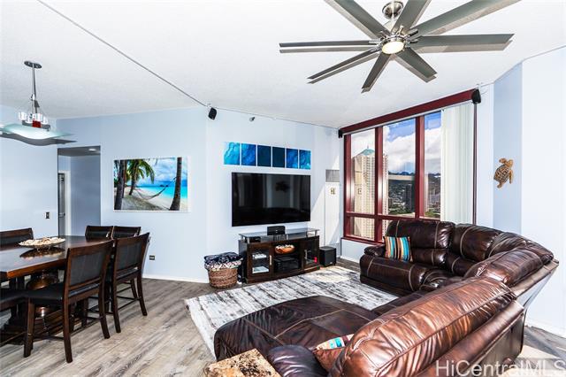 "nestled along vibrant kapiolani boulevard, this thoughtfully designed three-bedroom residence blends comfort, style, and convenience. the extra-large, single-bay parking stall is a rare bonus, adding to the home's everyday ease. step inside to a bright, open living space where soaring ceilings create an airy sense of sophistication. luxury vinyl plank flooring flows seamlessly throughout, lending warmth and elegance to every room. the highly sought-after “01” east-facing unit welcomes refreshing island breezes and showcases serene ocean views—a daily reminder of honolulu's beauty. residents especially appreciate the friendly security team and attentive building staff who help create a safe, welcoming community. recent upgrades include surround sound wiring and a closet system update in 2022. this home places you minutes from kaka‘ako's trendy dining, boutique shopping, and the lively energy of downtown. whether it's a quick ride on the nearby bus line or a leisurely stroll to a favorite café, everything you need is close at hand. this is island living at its finest—where convenience meets luxury and every day feels like home." -