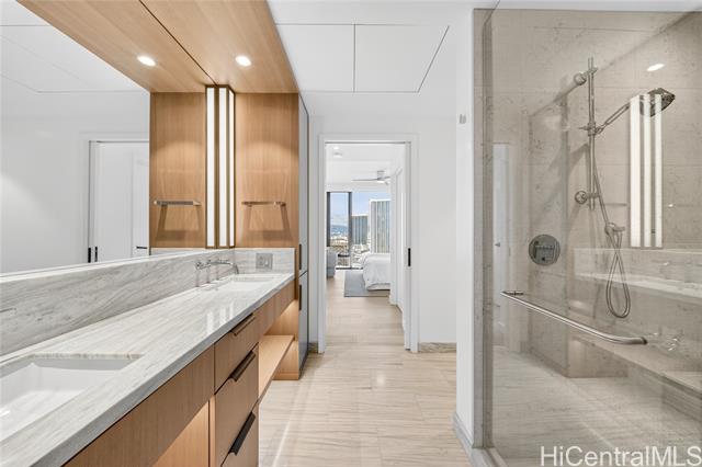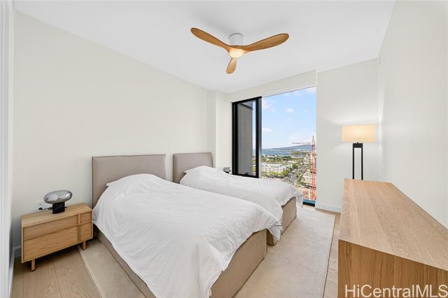 experience honolulu's newest ultra-luxury condominium, completed in november 2024—a true showcase of refined modern living. this stunning 2-bedroom, 2-bath residence features expansive sunset, ocean, park, and harbor views, enjoyed through floor-to-ceiling glass and high ceiling heights that create an open, light-filled ambiance. inside, every detail is beautifully and thoughtfully designed, from the motorized window shades to the top-of-the-line sub-zero and wolf appliances, gas cooktop, wine fridge, and premium finishes throughout. this residence comes with two side-by-side deeded parking stalls. resort-style amenities elevate daily life—lap and infinity pools, men's and women's spa areas with jacuzzi, cold plunge, and treatment rooms, bbq cabanas, movie theater, elegant event rooms, guest suites, and a luxurious pool house. perfectly positioned next to the brand-new urban park and skywalk, this residence embodies the very best of island luxury and sophisticated city living. -