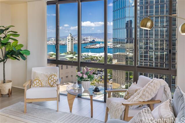 enjoy panoramic views and modern comforts at harbor square. take in sweeping views of honolulu harbor and the iconic aloha tower from this beautifully at harbor square. thoughtfully designed for both entertaining and everyday living, this spacious residence features two generously sized ensuite bedrooms. you'll appreciate the abundance of storage. enjoy the invigorating breeze flowing down from the mountains. washer and dryer in unit. building with 24/7 security. step outside and discover all the best of urban honolulu at your doorstep: vibrant chinatown, kakaako, whole foods, safeway, restaurants, banks, healthcare providers, and easy access to the h-1 freeway and public transit. maintenance fee includes internet, cable tv, electricity, a/c, and water. -