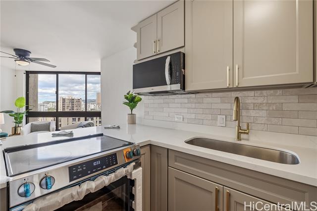 welcome to you freshly renovated sanctuary at liliuokalani gardens, 2104 (queen tower)! 100% hurricane coverage in place with no special assessment! experience tranquil island living in this tastefully reimagines, never-lived-in oasis. thoughtfully completed in october 2025, #2104 blends modern comfort with timeless serenity finished with all new appliances. this home welcomes the sunsets in soft pastels, majestic mountain views, & sparkling cit lights. this lush oasis once belonged to queen liliuokalani herself. designed with privacy and safety in mind, this rare unit includes an in-home fire sprinkler system. located just blocks from waikiki beach, the zoo, ala wai golf course, jefferson elementary, kapiolani park, kaimana beach, and premier dining, this home is your serene retreat in a vibrant city setting. resort style amenities include a koi pond, the largest residential pool in waikiki, spa, bbq pavilions, pickleball/tennis courts, ev charging stations, & 24/7 security-all surround by lush tropical gardens. hoa fee includes internet, cable, hot water, water and sewer. assigned parking $300/year. 90-day minimum rental. -