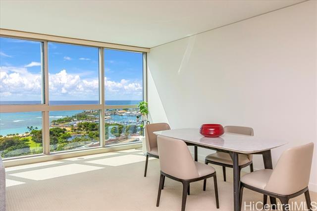 perched high above the city, this exquisite and well-maintained 2-bedroom, 2-bath residence offers 1,518 sq. ft. of refined living space. the expansive, rectangular living room is framed by floor-to-ceiling windows that fill the home with natural light and capture stunning partial ocean views. the thoughtfully designed layout provides both comfort and privacy. each room is generously sized, while the primary suite features a luxurious en-suite bath with a double vanity and breathtaking diamond head views. the gourmet kitchen is both stylish and functional, equipped with high-end viking appliances, a gas stove, and granite countertops. this well-maintained residence also includes two standard parking stalls. enjoy resort-style living with an array of exceptional amenities: a recreation deck, two tennis courts, a heated pool, spas, a walking path, fitness center, billiard room, movie theater, media and conference rooms, concierge-like services, and 24-hour security. perfectly located near ala moana shopping center, beach park, and ward village, this home offers the best of honolulu's vibrant urban lifestyle, world-class dining, shopping, and entertainment all just moments away. -