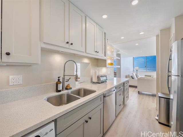welcome to one of the most desirable units in foster tower- a prime end unit with unobstructed ocean, beach, and sunset views. this beautifully renovated 2-bedroom, 2-bath condo features a modern kitchen with stainless steel appliances, updated bathrooms, new flooring, and both spilt and window ac units for added comfort. washer and dryer are in-unit, and the property includes a fee simple interest with an assigned parking stall. located directly across from waikiki beach, foster tower offers secure entry and resort-style amenities including a newly renovated gym, sauna, and pool. with resort zoning and a 30-day minimum rental allowed (per house rules), this unit is perfect for a full-time residence, vacation home, or investment opportunity. first open house sunday, november 2nd, 2-5 pm. *some photos have been virtually decluttered. next open house sunday, november 9th, 2-5 pm. -