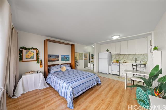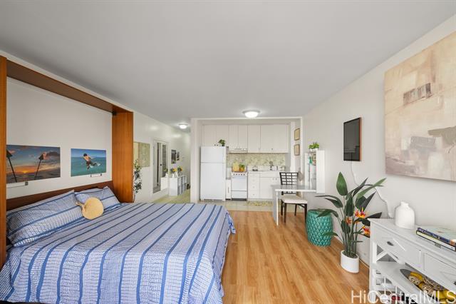 updated studio unit on the 27th floor in the heart of waikiki- featuring canal, mountain and ocean views. enjoy sunsets and friday night hilton fireworks from your lanai. amenities include panoramic rooftop view with heated salt-water pool, fire pit, multiple bbq stations, covered lounge areas and sauna. unit sells furnished with in-unit washer/dryer, custom wall-bed, ceramic tile and laminate flooring, ready for you to move in or rent out. other features include assigned covered parking stall, guest parking, fob access to building, and on-site management. contact us to schedule a private showing today. -