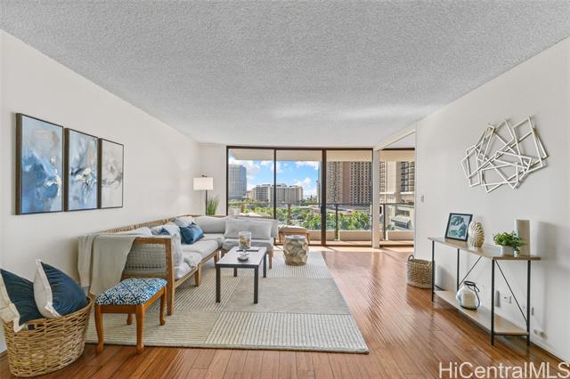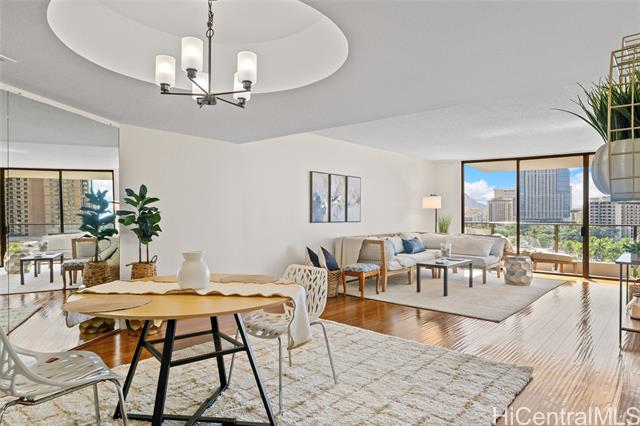"priced to sell! long 44-year land lease through 11/30/2069. enjoy open panoramic 11th-floor views over fort derussy, diamond head, and the hilton hawaiian village! spacious 2-bed/2-bath with 1,171 sq. ft. interior + 124 sq. ft. lanai (1,295 sq. ft. total) and central air conditioning. upgrades include modern kitchen cabinets, granite countertops, stainless-steel appliances, microwave, dishwasher, new disposal, renovated bathrooms, and vinyl plank flooring. this is the best-priced leasehold in the building! just a short walk to the swimming beach & lagoon at hilton hawaiian village. convenient new abc store on the ground level, plus restaurants galore. walk or take a short bus ride to ala moana beach park and ala moana shopping center. everything to love about this condo and location! includes one covered, secured parking stall (level 3), swimming pool, and large bbq area. condo is vacant and easy to show on short notice. seller will consider financing a first mortgage with 50% or more cash down. building allows 90-day-or-longer rentals and two pets. $1794.54/mo. is the new maintenance fee for all of 2026, property tax $196/mo. & lease rent $1173/mo." -