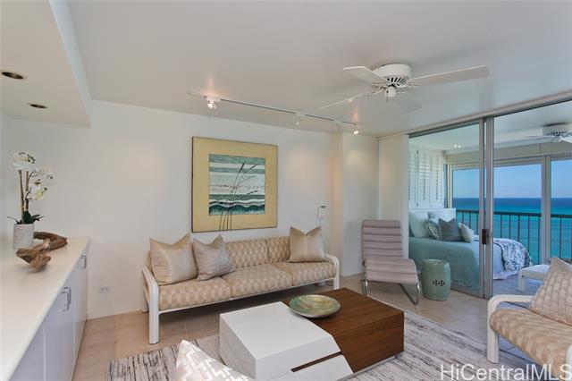 discover an exclusive two bedroom, two bath residence on waikiki's coveted gold coast where the sand meets the sea. perfectly positioned on the beach, this exceptional home offers sweeping unobstructed views of the pacific ocean, diamond head, and even the distant silhouette of lana'i. from your spacious lanai, take in the sight of outrigger canoes gliding across the shimmering water, surfers chasing the first waves of dawn, and the vibrant panorama of waikiki unfolding before you. awaken to the soothing rhythm of the ocean, stroll directly onto the sandy shore, and let the gentle trade winds fill your living space with the fragrance of the sea. enjoy the friday night fireworks, beautiful sunsets, walks in kapiolani park and concerts under the stars at the waikiki shell amphitheater. in one of honolulu's most coveted boutique residences, sans souci reflects the timeless refinement of coastal island living. savor world-class dining at michel's, hau tree, and arden's at the lotus, or enjoy casual bites at the barefoot beach café, elks club, and outrigger canoe club. just a short walk brings you to the iconic beaches of waikiki or the scenic trails of diamond head. -