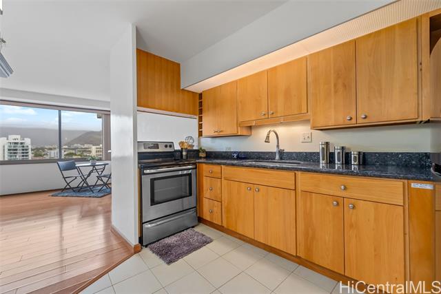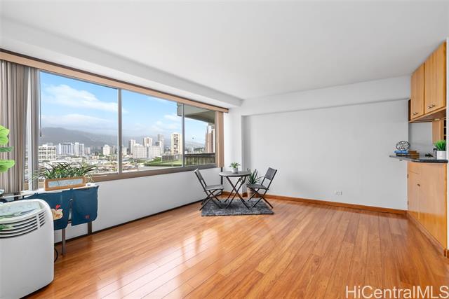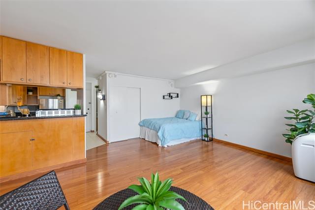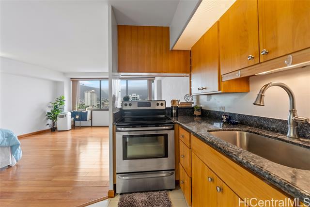 updated, clean, and move-in ready! this efficient studio, located on the cool mountain side of the building, boasts laminate flooring, modern cabinets and counters, stainless steel appliances, a portable ac and a full-size stacking washer/dryer. plus, it comes with a convenient parking stall with easy access to the building. enjoy an array of top-notch amenities, including a swimming pool, tennis and pickleball courts, a basketball court, driving range, bbq area, security, and a recreation deck. perfectly situated near waikiki, ala moana, and manoa, with plenty of shops, restaurants, and entertainment just minutes away. don't miss this opportunity to own in a well-maintained, updated building. fully insured with water sprinklers installed throughout. an additional monthly fee of $103.58 goes toward ongoing reserves. monthly tax amount is based on 2024 tax assessed values. -