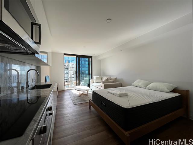 "beautiful ocean view studio in ""a'ali'i"" in ward village! elegantly designed by soloman cordwell buenz architects with rottet studio (interior designers of four seasons), stepping into a'ali'i is like stepping into a 5 star hotel. unit includes fully furnished (elegantly interior designed valued at $30k, not murphy bed!) located in the heart of kaka'ako, with whole foods market, numerous shopping and dining venues, and ala moana beach all within walking distance, this modern residence has a large pool deck with multiple cabana and grilling areas and party rooms. the rooftop ""lanai"" on the 42nd floor, boasts sky lounge, event space, private dining room, fitness center with sweeping ocean and city views! enjoy the ocean view from your lanai. 1 parking included." -