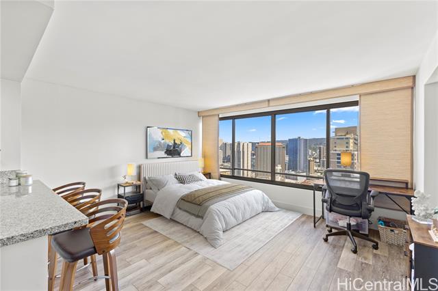 rare high-floor studio in the iconic discovery bay! unit 3905 in the endeavor tower offers the best of island living with sweeping water, city, and mountain views from the cool side of the building. recently updated and fully furnished, this residence features luxury vinyl flooring, a full kitchen, in-unit washer/dryer, and one assigned parking stall. enjoy amenities including a pool, spa, sauna, fitness center, bbq areas, 24-hour security, and full-service management. wifi and basic cable are included in the maintenance fee. prime west-end waikiki location near ala moana center, ala moana beach park, and world-class dining and shopping. don't miss this opportunity—schedule your showing today! the unit is 96.893% fee simple with the aoao holding both the right and obligation to acquire the remaining 3.107% leasehold interest by december 31, 2039. lease rent is $22.82/quarter or $7.61/month. -