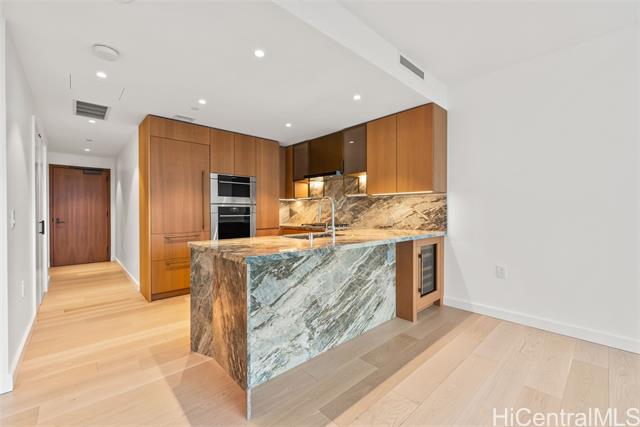 luxury one bedroom residence at victoria place, the newest front row building in ward village. this beautifully designed home showcases ocean, harbor, park and sunset views. high end finishes include: studio becker cabinets, wolf and subzero appliances, gas stove, wine fridge and electrolux washer/dryer. wood flooring throughout with natural stone counter and tiles. upgrades include motorized shades and a custom closet system. enjoy resort-style amenities including three swimming pools, lauhala pool house for private gatherings, spa with hot tub, cold plunge, steam and sauna rooms, private dining, chef's kitchen, wine cave, theater, meeting rooms, barbecue pavilions, and guest suites. experience the best of kaka‘ako living. -