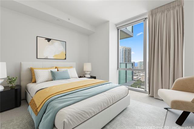 discover luxury and convenience in this premium 2-bedroom, 2-bathroom corner residence located on a high floor of the highly sought-after azure ala moana. this spacious unit includes two side-by-side covered parking stalls and a private storage locker in the garage. enjoy breathtaking ocean and sunset views from your living room, complemented by roller shades throughout and blackout curtains in all bedrooms. kitchen features top-of-the-line sub-zero, wolf, and bosch appliances, perfect for home chefs and entertainers alike. just a short 5–10 minute distance to ala moana center, ala moana beach park, target, sam's club, and countless dining and shopping options, this home places you right in the center of honolulu's vibrant lifestyle. resort-style amenities include a pool and jacuzzi, bbq pavilions, a movie theater, fitness center, bicycle and surfboard storage, guest suites, and high-speed wi-fi throughout the amenity areas. the building also offers secured entry and 24-hour concierge and reception services for your comfort and peace of mind. -