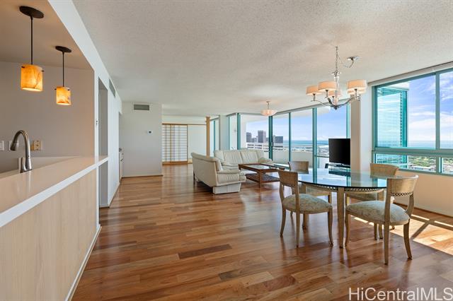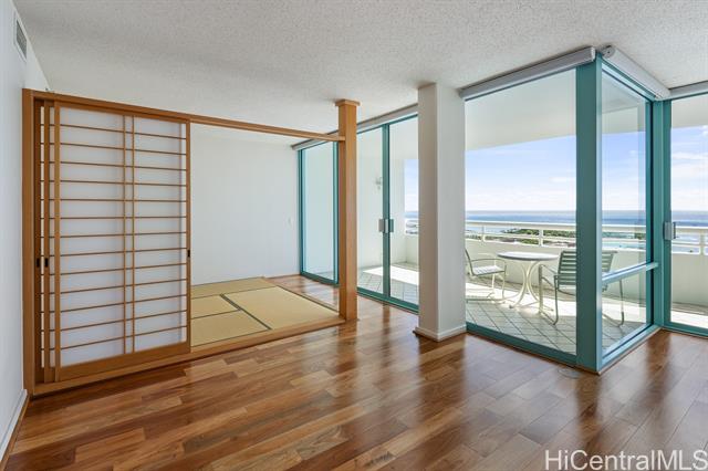renovated in march 2025, junior penthouse 27a at uraku tower is a rare offering that epitomizes the perfect blend of luxury, comfort, and panoramic island living. spanning 2,255 square feet, this expansive 3-bedroom, 2.5-bath residence features brand-new engineered hardwood flooring, sleek toto washlets, and motorized blinds throughout. thoughtfully designed for relaxation and convenience, the home includes a private in-unit sauna, a traditional japanese-style tatami area, and three lanais totaling 413 square feet, offering sweeping 270-degree views from the ocean to the mountains. perfectly positioned next to ala moana shopping center in the vibrant heart of honolulu, uraku tower is a premier full-service residence providing 24-hour concierge and front desk service, complimentary limousine transportation, and weekly maid service. experience refined island living at its finest in one of honolulu's most coveted neighborhoods. -