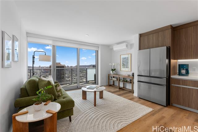 "the park on ke'eaumoku is completed & resales present an excellent opportunity to buy new without the wait! located in the liona tower, this preferred larger 1-bedroom, ""07""unit is move-in ready, including furniture, auto window shades, hardwood floors! ideal high-floor unit on the cooler east facing side, with unobstructed, sweeping mountain, diamond head, & waikiki views. enjoy colorful rainbows on misty mornings as the sun rises, & expansive city lights in the evenings. wonderful, east facing breezes filter through the unit for those who prefer a fresh atmosphere of hawaii's clean air! the park on ke'aumoku is centrally located in urban honolulu, within minutes to a wide variety of restaurants, ala moana shopping center, ala moana beach park, nightlife & honolulu's lively urban scene. these resort style amenities make this price a bargain: infinity pool, cabanas, whirlpool spa, bbq pavilions, club room, fitness, yoga studio, sauna, co-work spaces, media lounge & private movie theater. as building costs continues to rise, honolulu's newest residential landmark condominium, offers the perfect first time home, investment or vacation retreat!" -