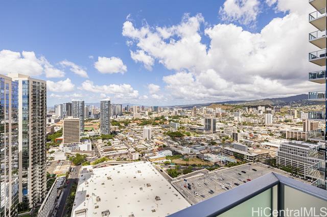 enjoy luxury convenient living on the 35th floor in mid town honolulu. built in 2021,the unit is in excellent condition with 9 foot high ceilings with ceiling fans in the bedrooms and living room. enjoy the ocean and mountain views from the living room, lanai and both bedrooms. azure offers an exercise room, recreation room, movie theater, 4 grills and 2 cabanas, puppy park, 4 guest rooms for out of town visitors, and concierge services. the unit has two parking stalls and storage. across the street from ala moana center, walmart, sam's club, great restaurants and much more. very close to magic island and ala moana beach. azure is fully covered with 100% hurricane nsurance. -