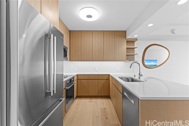 "welcome to sky ala moana west! experience elevated island living in this stunning high-floor 1-bedroom, 1-bath residence with one parking stall. enjoy sweeping ocean and diamond head views from your private lanai. perfectly situated just steps from ala moana shopping center, premier dining, grocery stores, and the beach park, this contemporary home offers unmatched convenience and comfort. resort-style amenities abound unwind in two spas and saunas, relax by the poolside cabanas, host gatherings in private dining rooms and bbq pavilions, or stay active in the large fitness center, outdoor workout area, and dog park. families will love the playground and lush open spaces designed for modern island life. live, play, and thrive in the heart of honolulu at sky ala moana west." -