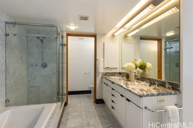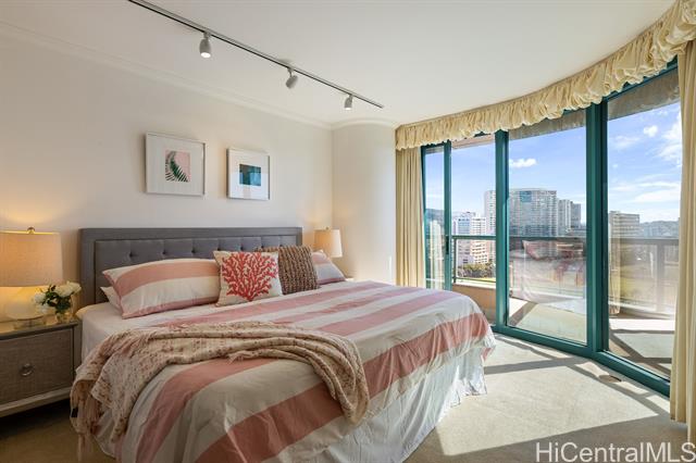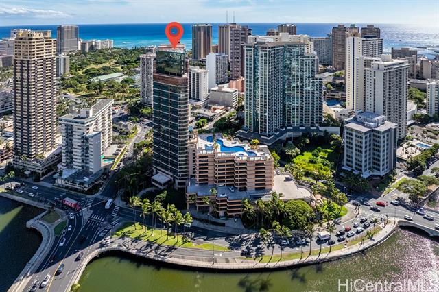 corner residence at waikiki landmark with sweeping views from the mountains to a glimpse of the ocean and diamond head. the generous living area flows to a broad lanai, creating a deep sense of space rarely found in a high-rise. a large living area, two bedrooms, and two-and-a-half baths support flexible daily use. central ac, marble/stone flooring, in-unit laundry, and two covered parking stalls add comfort and function. fee-simple ownership in a full-amenity building with pool, spa, bbq areas, meeting spaces, fitness room, and on-site 24/7 security. great opportunity in the heart of waikiki! -