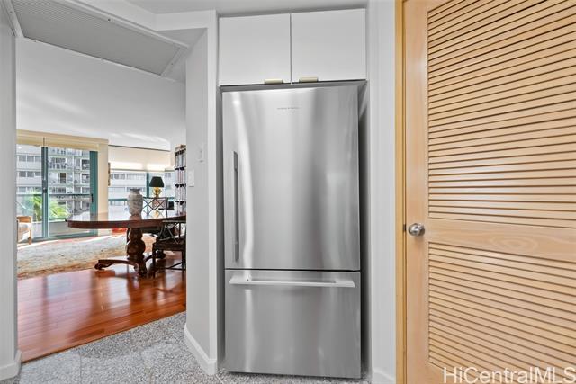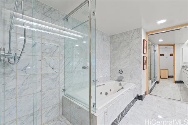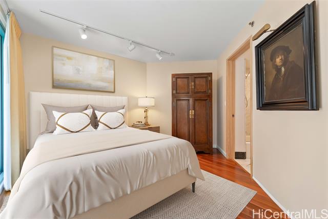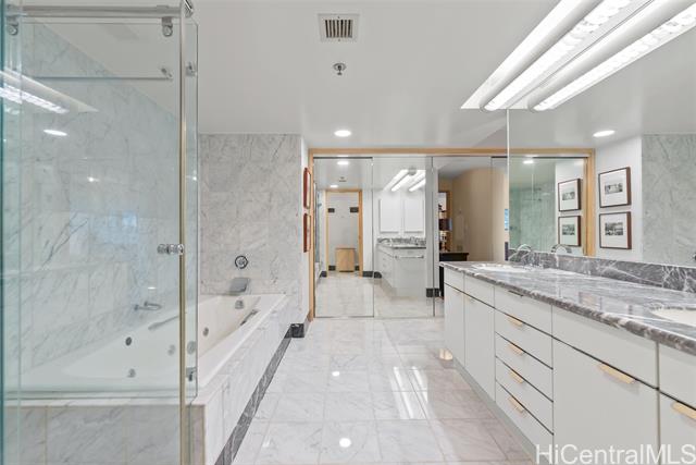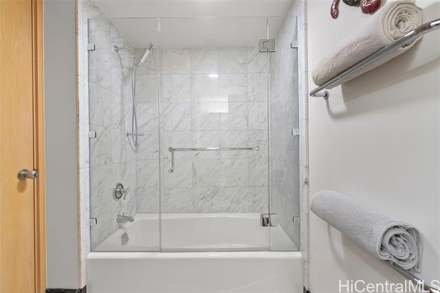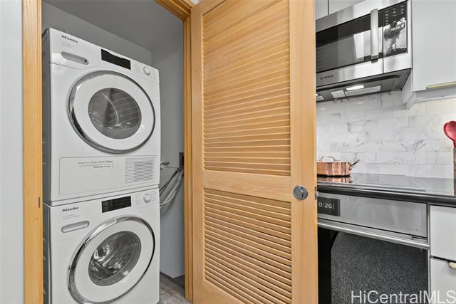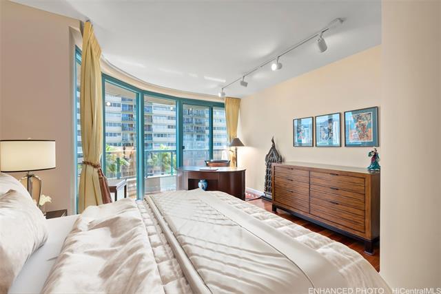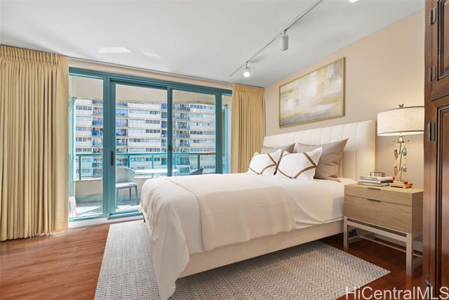 waikiki landmark 907 combines thoughtful luxury upgrades w/ a warm sophisticated aesthetic. rich hardwood floors guide you through a spacious open layout that feels both elegant & comfortable, creating an effortless flow from the foyer into the main living areas. every detail has been refined for longevity style and ease of living. the kitchen features premium appliances including a ge cafe wall oven, miele cooktop, paykel refrigerator, bosch microwave, and stacked miele washer & ventless dryer all complemented by a striking calacatta marble backsplash. energy efficient led lighting & energy star appliances keep electricity costs low even with ac running. bathrooms showcase restored marble surfaces, polished floors, refreshed countertops, and a newly regrouted shower. new zoned ac systems in the living room and guest suite along with a rebuilt primary bedroom unit to ensure consistent cooling throughout. designer touches include hunter douglas duette shades, brass alabaster foyer sconces & refined led track lighting. residents enjoy the full suite of amenities, including a swimming pool, updated fitness center, 24 hour security, & guest parking. schedule a showing today! -