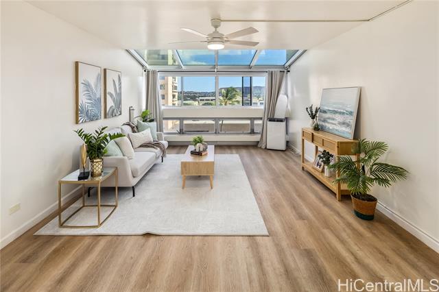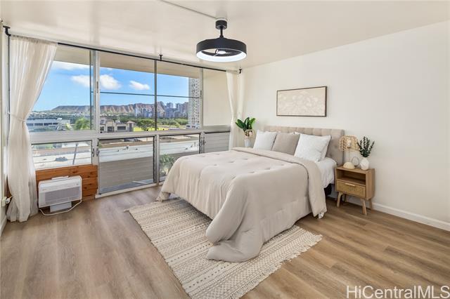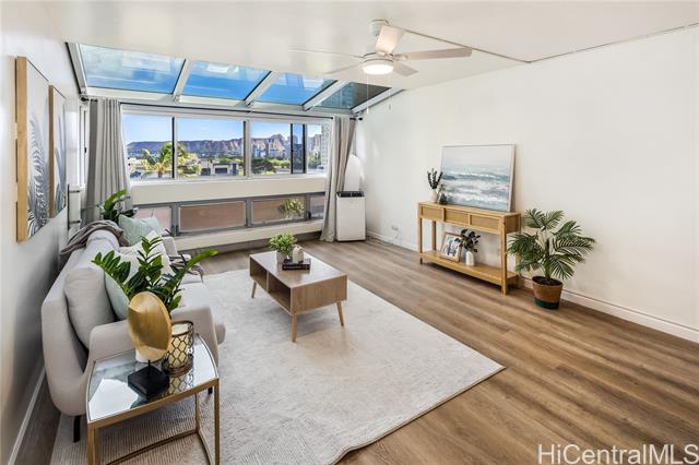 stunning 2-bedroom, 2 & 1/2 bath home with extended lanai and elegant arched window that frames a gorgeous full diamond head view — a rare find! natural sunlight floods the interior all day long, creating a warm, inviting atmosphere. enjoy modern comfort with luxury vinyl tile flooring throughout, fresh paint, and no popcorn ceiling (clean, updated finish). inside, the thoughtful layout offers generous living space, ideal for relaxing or entertaining. as part of ala wai plaza, you benefit from resort-style amenities including a pool, fitness center, bbq and recreation areas, 24-hour security, on-site resident management, bike & surfboard storage, extra space storage and more — all within a well-maintained, pet-friendly building. located just minutes from top destinations — whether it's the beach, shopping at ala moana shopping center, or the shops and dining of waikiki — this unit offers the perfect blend of comfort, convenience, and the iconic hawaiian lifestyle. don't miss this bright, tranquil retreat with unbeatable diamond head views! -