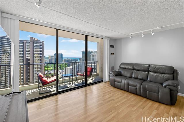 "this rare high-floor condo offers exceptional value and an incredible opportunity to experience the best of hawaii, with breathtaking views of the ocean, waikiki, and koko head. located in the heart of waikiki, it's just a short walk to world-famous waikiki beach, ala moana beach park, and the ala moana shopping center. the unit features a tastefully remodeled kitchen, bathroom, and flooring, providing both style and comfort. enjoy resort-style living with amenities that include an expansive pool area, fitness center, sauna, bbq cabanas, recreation room, and 24-hour security. the unit also comes with a reserved covered parking stall on the second floor, conveniently located near the elevators for easy access. best of all, utilities are included in the low monthly maintenance fee - covering electricity, water/sewer, and trash service. additional perks include a dedicated storage room on each floor and racks for surfboards and paddleboards on the first floor for easy access. if you're looking for the perfect blend of comfort and convenience in the heart of waikiki, château waikiki offers all of that and more." -
