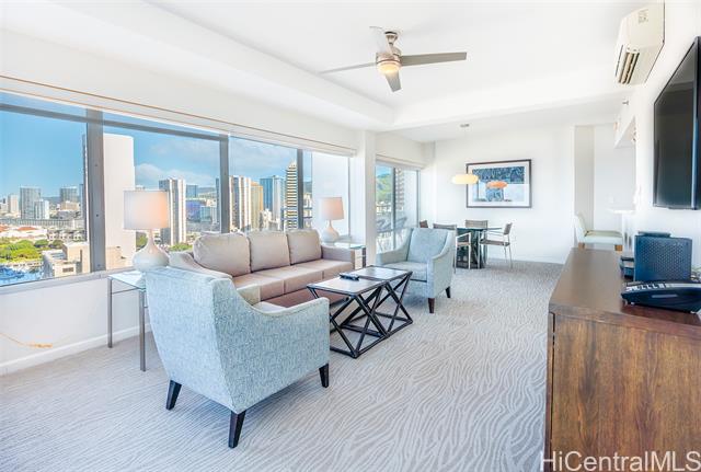 "the ilikai apartment building is one of the iconic and legendary hotels in waikiki. fully remodeled in 2014, this two bedroom, two bathroom is preferred at the ocean front-corner unit of the building along the ocean and marina side. unit offers a spacious floor plan with large lanai too. panoramic views of ocean, marina and beautiful sunset. fully furnished. currently in the aqua-aston ilikai hotel pool program. this unit is move in ready or ready to be rented out. enjoy the waikiki lifestyle!" -