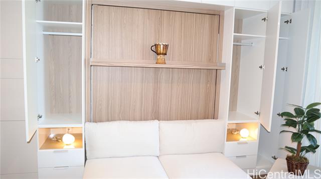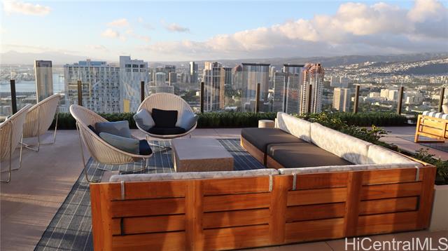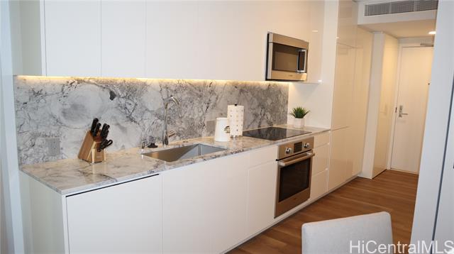 live in this high floor fully furnished studio on the preferred cooler side of the building! this very well priced studio with a queen size murphy's bed, an attached sofa, a folding dining table, a built-in work center and closets, lots of storage, a furnished lanai that's all blended in by renowned designer lauren rottet, to fit the complete and elegant decor. you can't forget the complete set of kitchen ware with cooking vessels, place settings, silverwares' and more. a central ac system will create a cool climate at your command. this unit is fully equipped for an instant and comfortable lifestyle! the amenities are resort style with a fitness center, a yoga room, a pool deck and jacuzzis surrounded by cabanas. you will enjoy the stunning ocean and city views from your private lanai as well as panoramic views from the 42nd floor sunset sky lounge. just steps away you will find several culinary delights including cino, rinka, onkee, tonkatsu kuro, planted by la-tour, dean & deluca and more. you will be able to walk to the state's flagship whole foods market in a few very short minutes as well as the saturday kakaako farmer's market! -