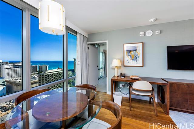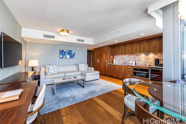 island-style luxury meets 5-star resort resort living at the ritz-carlton residences waikiki. located in the newer diamond head tower 2 completed in 2018, this 1 bedroom, 2 full bath end-unit enjoys stunning 180-degree views of the pacific ocean, partial diamond head, ala wai canal, and ko'olau mountains. enter to find a contemporary floor plan combining living, kitchen, and dining spaces. a private lanai just off the main living area is the perfect place to enjoy morning sunrises with views of paradise. the bedroom suite also features direct diamond head and ocean views, and features a true resort ensuite bathroom with separate deep soaking tub and walk-in shower. centrally located in waikiki, fine dining, high-end shopping, sandy beaches, stretching coastlines, and water activities are just minutes away. a lifestyle of luxury awaits at the ritz. this property is an ada-compliant unit. -