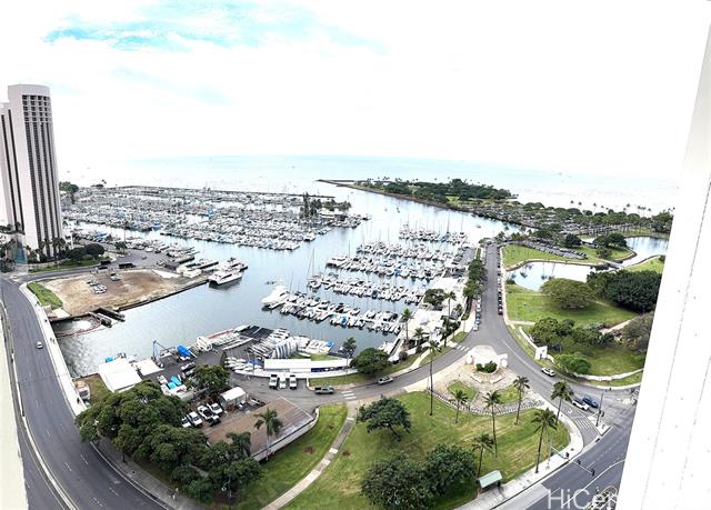 "newly renovated from the ceiling to the floor in a luxury building. one bedroom unit with a spacious living room and ocean, yacht harbor and sunset view. brand new appliances and new a/c unit. quartz countertops and luxury vinyl flooring. located across from the famous open market, ala moana shopping center, and the beautiful magic island. maintenance fees included all the common expenses, gas, electricity, water, sewer and the internet. amenities including tennis and pickleballs court, jacuzzi pool and much more. a must see! first open house 1/11/26 from 2 -4 pm" -