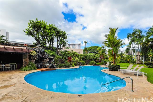 affordable luxury! nestled amidst the serene manoa stream , this spacious two-bedroom, two bath condominium offers a lifestyle of comfort far beyond its price. elegant and secure, it seamlessly blends modern amenities with tranquil surroundings. enjoy a fully equipped kitchen a relaxing spa, a pristine pool, a cabana and a private wine cellar. delight in the warmth of wood accents with built in cabinets, flooring and seating. plus , enjoy beautiful views of manoa valley, majestic trees and even a peekaboo view of diamond head. additional perks include guest parking, two covered parking spaces and extra storage. this is an ideal retreat! stop by on sunday, january 11 between 2 and 5 pm! -