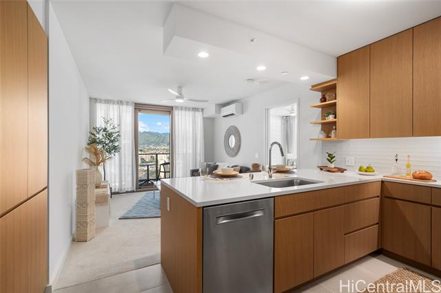 experience elevated urban living at sky ala moana west, one of honolulu's newest and most sought-after high-rises. this 33rd-floor corner residence features 2 bedrooms and 2 baths, showcasing sweeping city views from the living area and lanai, complemented by tranquil ocean vistas from both bedrooms. ideally situated near ala moana center, kakaako, and waikiki, with convenient access to hospitals and freeways. the home is thoughtfully designed with sleek modern finishes and premium stainless steel bosch appliances. residents enjoy an exceptional suite of resort-style amenities, including a fitness center, sauna, pool, bbq areas, recreation spaces, dog park, and more. discover a sophisticated island lifestyle in the heart of honolulu. -