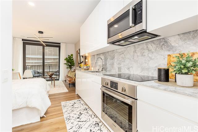 be in the desirable and thriving ward village community with this well-priced, well-maintained studio in aalii. the parking stall is on the same level as the unit, so no need to wait for an elevator. a 5th floor storage room is also included with the sale. upgrades include new washer/dryer, usb outlets, and a home smart system. digital blinds and fresh drapes for the lanai doors give multiple privacy options. this unit has high 9ft ceilings, which make the space feel more open. aalii is known for its plethora of amenities and is next to whole foods in kakaako. the wv community benefits from assocation security patrol, and has wide sidewalks. enjoy premium restaurant and retail offerings, all within a conveniently accessible area. -