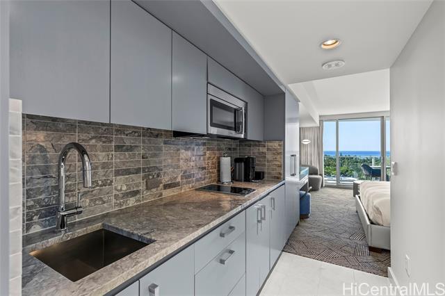 enjoy luxury living at the ritz-carlton residences waikiki beach. this ewa tower studio residence has been renovated and comes fully furnished with linens, kitchenware, upscale appliances, marble bathroom walls and countertops and washer dryer. resort-style amenities feature two sparkling pools, a modern fitness center, concierge, and valet services, plus a popular deli/cafe. easy access to hundreds of restaurants and events in waikiki. unit is currently not in hotel pool. -