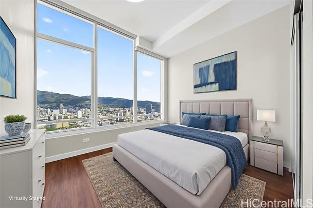 "penthouse on the 48th floor offering sweeping panoramic views of the city skyline and mountains. this rare wrap-around residence features floor-to-ceiling windows that flood the home with natural light, showcasing breathtaking views from every angle. the spacious layout includes a grand living room with 11-foot ceilings, a gourmet kitchen, two bedrooms, two bathrooms, and a separate laundry room. recent upgrades include brand new interior paint, new flooring throughout, a new kitchen island, and new refrigerator, dishwasher, and microwave, creating a fresh and modern living experience throughout. the unit comes with two parking stalls. pacifica honolulu offers resort-style amenities including a swimming pool, fitness center, sauna, bbq cabanas, theater rooms, and 24-hour security with an on-site resident manager. conveniently located near ala moana beach park, ala moana shopping center, ward village, and an abundance of shops and restaurants. experience luxury penthouse living at an exceptional value in one of honolulu's most desirable locations." -