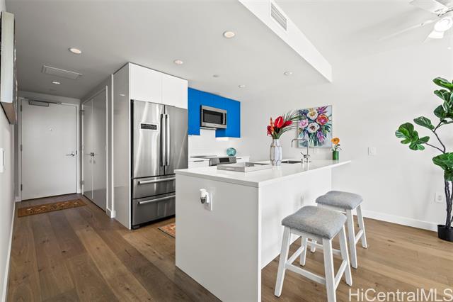 "welcome to modern island living at ae‘o. this pristine one-bedroom, one-bath residence is located in the heart of ward village in kaka‘ako. impeccably maintained, the home is fully furnished and move-in ready, offering a seamless opportunity to enjoy one of honolulu's most desirable urban communities. the thoughtfully designed open floor plan features floor-to-ceiling windows, contemporary finishes, and a sleek, well-appointed kitchen. additional highlights include central air conditioning, an in-unit washer and dryer, and a dedicated storage locker for everyday convenience. ae‘o offers an exceptional collection of resort-style amenities, including two swimming pools, indoor and outdoor fitness centers, spa and sauna, movie theater, rooftop sky deck, dog park (2 pets up to 60 lbs), guest suites, playground, bbq pavilions, and secured direct access to whole foods market. ideally located near ala moana beach park, ala moana center, and a wide array of dining and entertainment options, this residence is ideal for both investors and owner-occupants seeking everything they need—all in one place." -