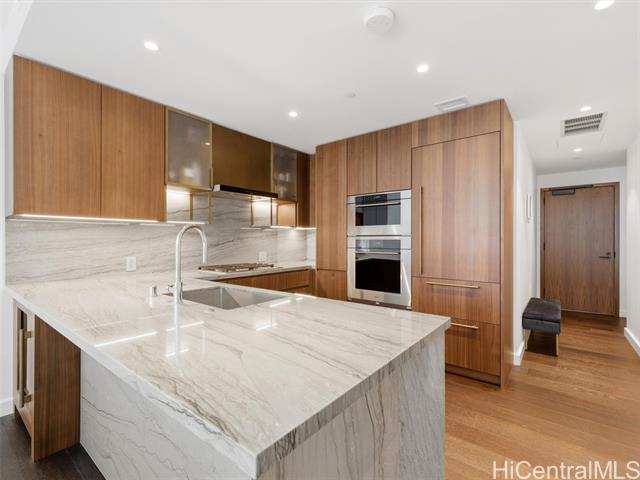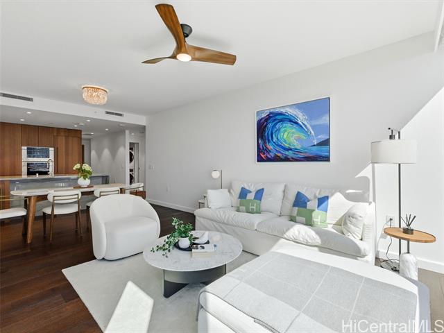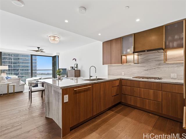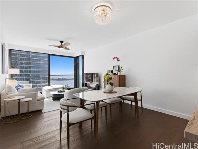 "spacious one-bedroom residence at victoria place, the newest front-row luxury building in ward village. this beautifully designed home features ocean, harbor, park, and sunset views. thoughtful upgrades include custom closet systems by inspired closets, motorized shades, toto washlet, ceiling fan and light fixture in the living room. high-end finishes include studio becker cabinetry, wolf and sub-zero appliances, gas cooktop, wine refrigerator, and electrolux washer/dryer. wood flooring throughout is complemented by natural stone countertops and tile finishes. residents enjoy exceptional resort-style amenities including three swimming pools, the lauhala pool house for private gatherings, a full spa with hot tub, cold plunge, steam and sauna rooms, private dining and chef's kitchen, wine cave, theater, meeting rooms, barbecue pavilions, and guest suites. experience the best of coastal kaka‘ako living at victoria place." -