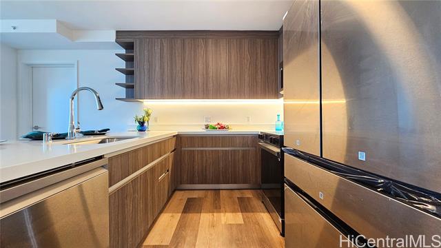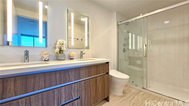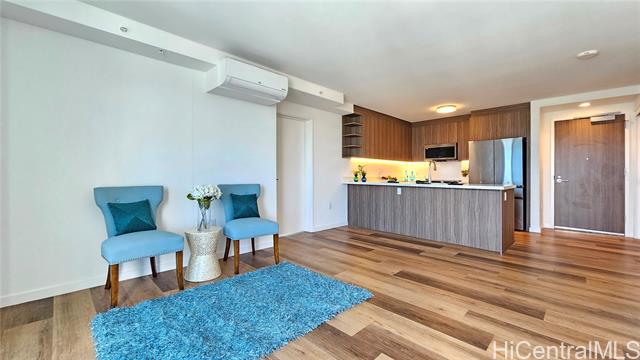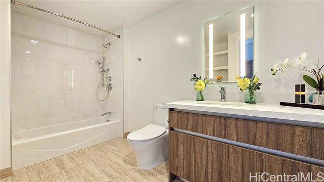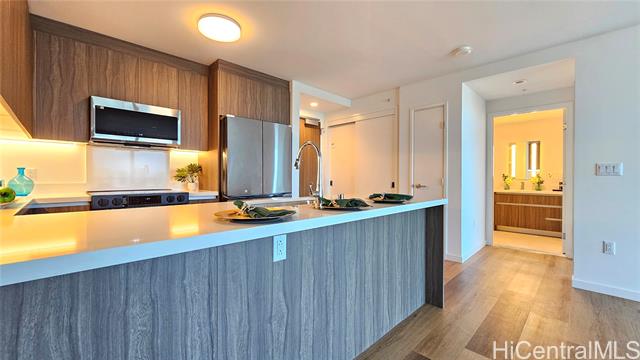 "centrally located brand new bldg. brand new unit-never lived in rycroft tower w/ beautiful panoramic vws of ocean, mountain & city. desirable open floor plan. bedrooms are separated by living room. spacious open kitchen w/ quartz counter tops & stainless steel appliances. luxury vinyl plank flooring. primary bdrm w/ walk in closet. upgraded toto toilet in primary bathroom. split ac in every room, floor to ceiling windows to enjoy beautiful vws. spacious lanai overlooking the city, ocean & mountain. installed window shades, expansive rec deck offers a variety of amenities to enjoy. infinity pool & spa, sauna, bbq cabanas, outdoor lounging areas, fitness, yoga studio, movie theater, co-working spaces, dog run & landscaped gardens. pet-friendly. 2 covered side by side pkg stalls with 24/7 security and many guest pkg. midtown eats opened at ground floor for you to enjoy variety foods. ala moana beach park, shopping center, restaurants, entertainment, transit, and parks are near by for you to enjoy. great living at conveniently located new building." -