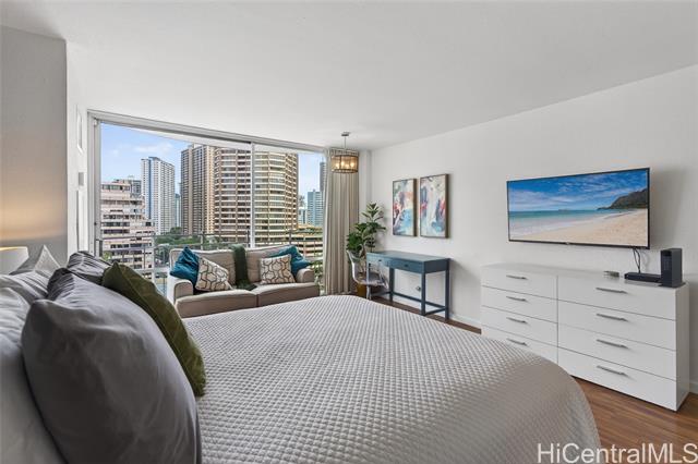 beautifully renovated high-floor studio in the desirable ilikai marina with a city lights view that truly shines at night. this flexible property allows short-term rentals, making it ideal as a second home, investment, or full-time residence—use it when you're here and rent it out when you're not. the unit features a private lanai and a convenient kitchenette with refrigerator/freezer, two-burner stovetop, and microwave. the building offers three restaurants downstairs and is perfectly located near ala moana mall, hilton hawaiian village, the boat harbor, and the convention center for any event needs. on-site parking is available for a small fee daily, nightly, or monthly, and this is a rare opportunity for rental flexibility in a prime waikiki/ala moana location. please see and use all supplements when submitting any offers. legal short-term rental with annual dpp registration. monthly fees: hoa $800.78, special assessment $45.53, cable $58.46 (total $904.77) plus electric and a/c (typically between $50-$100 combined per month). -