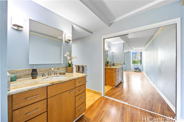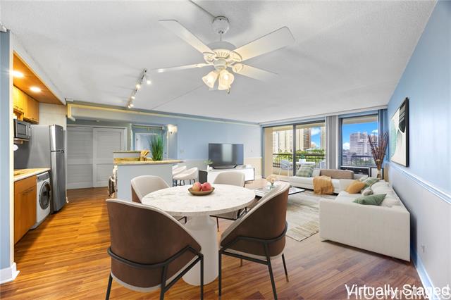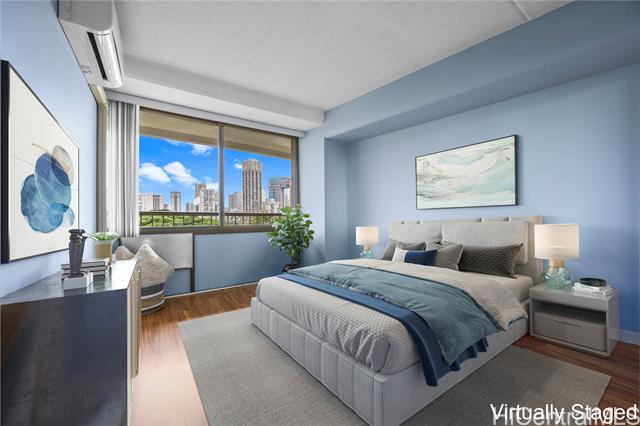 "beautiful lush tree top garden views from this spacious fee simple 2 bedroom. 2 bathroom with covered assigned parking. this rarely available unit features a large primary bedroom, luxury vinyl flooring, split air conditioning in both bedrooms, in-unit washer/dryer and walk-in shower. enjoy the 135 sq ft lanai with ample room for relaxing and entertaining. excellent location on park setting with tropical grounds, close to famous waikiki beaches, ala moana shopping center, restaurants and the university of hawaii. the well maintained marco polo offers resort-like amenities which include a wonderful swimming pool, sauna, tennis, basketball/pickleball courts, bbq, golf driving nets, a convenience store in the lobby, car wash area, ample guest parking, storage, 24 hour security,100% hurricane coverage with reasonable monthly maintenance fees. the sprinkler/fire pa alarm system has been completed throughout building. the bathroom plumbing project was recently completed. photos have been enhanced." -