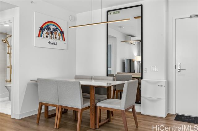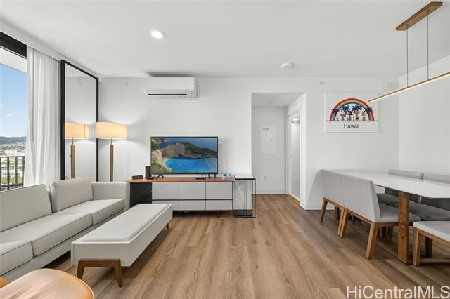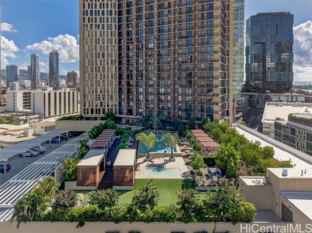 "welcome to unit 2303 at a‘ali‘i, a modern 1-bedroom residence in the heart of ward village. this fully furnnished unit offers expansive city and sunset views through floor-to-ceiling windows, filling the home with natural light and island breezes. the open-concept layout features a sleek contemporary kitchen with quartz countertops, modern cabinetry, seamlessly flowing into the living and dining areas. a‘ali‘i is known for its resort-style amenities, including a rooftop sky deck with ocean views bbq cabanas, fitness center, yoga room. located just steps from ala moana beach park, whole foods, ward village shops and dining, this unit offers an exceptional urban island lifestyle. don't miss this opportunity to own in one of honolulu's most desirable communities." -
