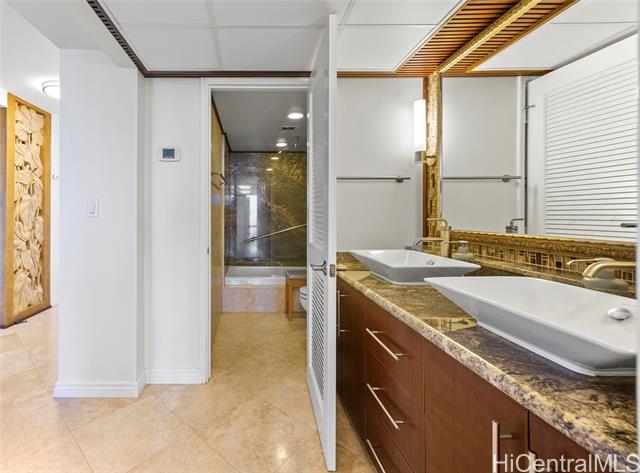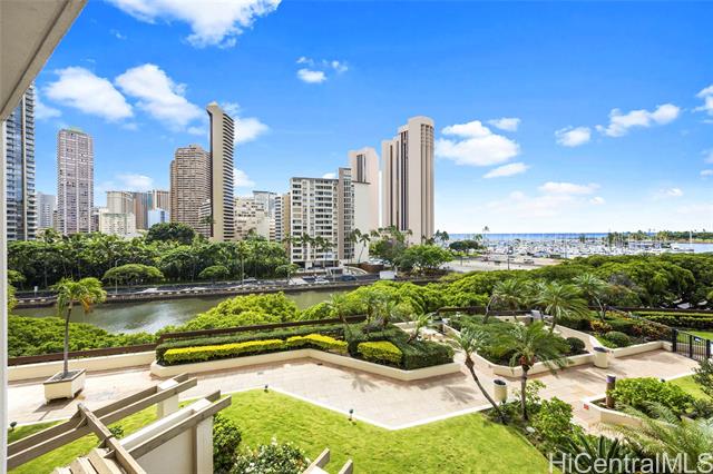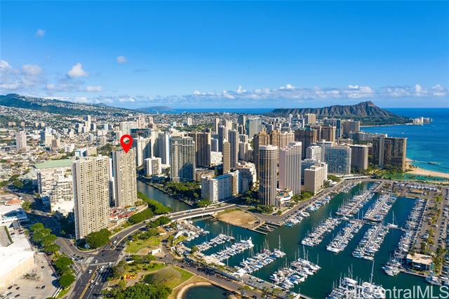 enjoy ocean, marina, and sunset views from this stunning and sophisticated apartment home. one of the larger one-bedroom floor plans in the building, the unit offers a bright open living area designed to maximize light and views. thoughtfully and luxuriously renovated with quality materials and custom built-ins, the residence features travertine floors, warm wood cabinetry, and a fully equipped kitchen seamlessly integrated into the living space. the bedroom offers generous storage and is a peaceful retreat with large windows framing lush greenery and city views. located at the gateway to waikiki, just moments from ala moana shopping center, beach, and park, this well-maintained residence provides a comfortable and convenient island lifestyle. in the quiet diamond head tower of the complex, the apartment offers easy access to an array of amenities including swimming pool, whirlpool spa, barbeque/recreation area, and tennis court. an assigned and secure parking stall is close to the lobby entrance. elegant furnishings are available. -